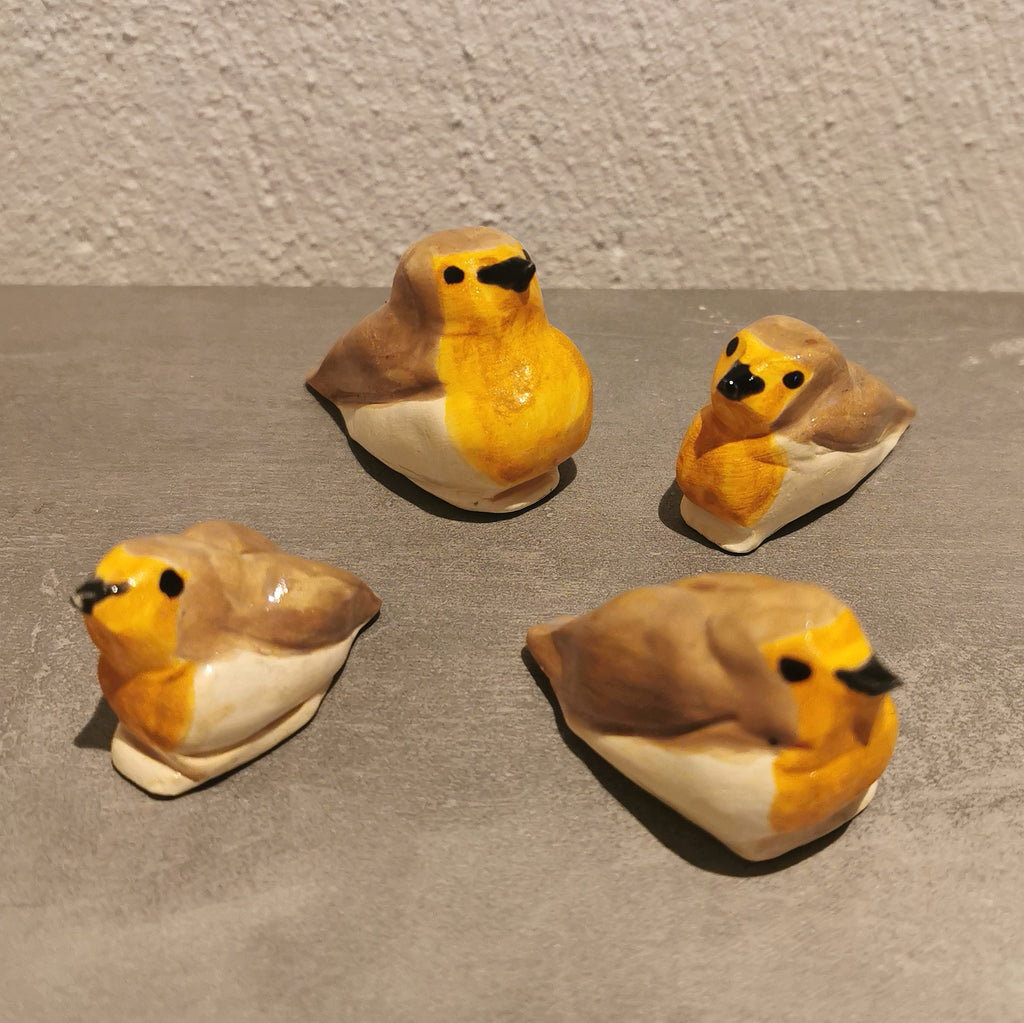 Each miniature is handmade from clay and handpainted using a variety of glazes and underglaze colours. They measure approximately 4-6 cm.