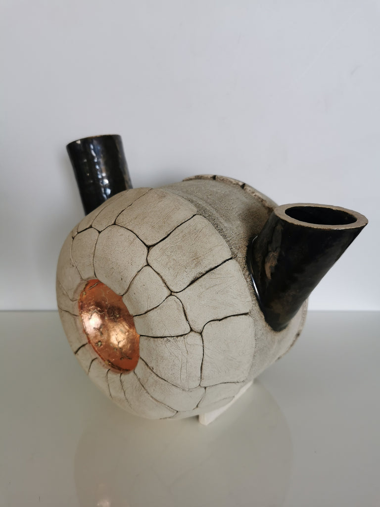 The artist cherishes her countries heritage with its stone tombs, castles, walls and cottages. This Ceramic form is inspired by the tomb passage at Brú na Bóinne.